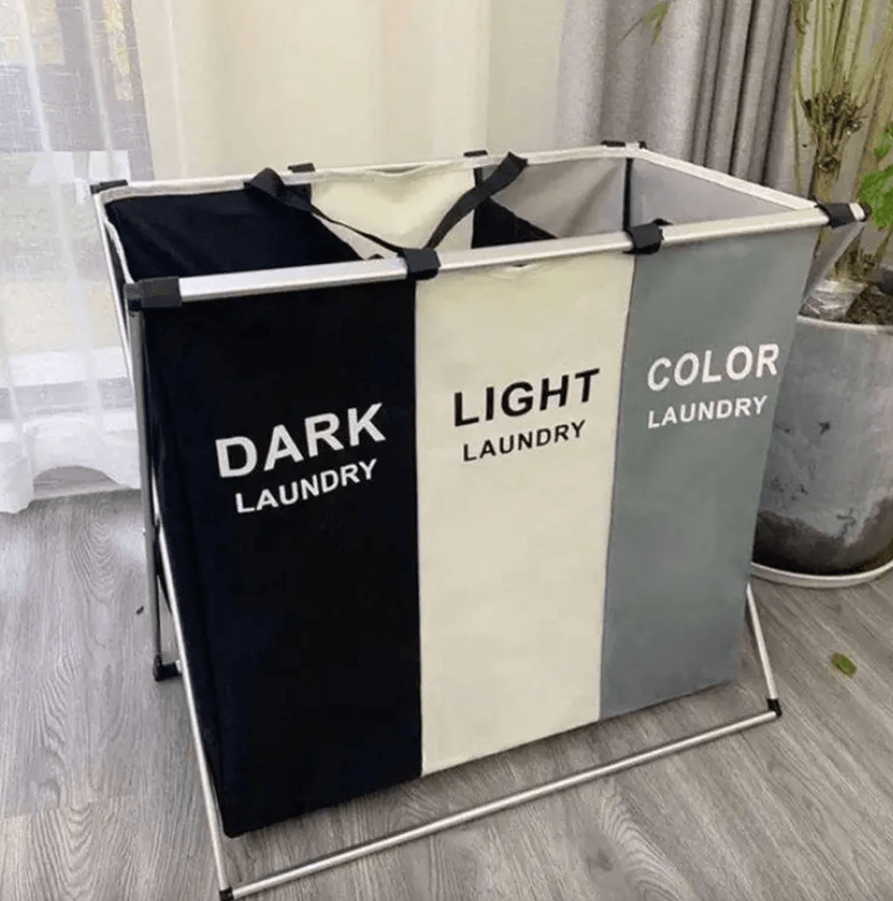 Розкладний кошик для білизни Laundry Basket розділений на три секції, даючи змогу вам сортувати темні, кольорові та світлі речі. Кожен відсік вміщує до 2 стандартних завантажень білизни.